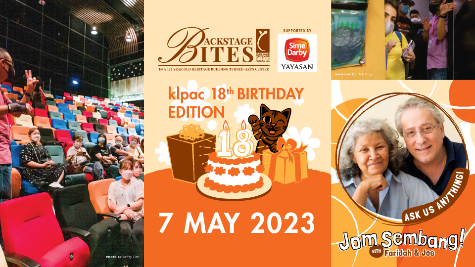 It’s never too late to get to know your own local arts centre by taking a guided backstage tour through the 121-year old heritage building that now houses klpac, the country’s first and only fully-integrated arts centre. In honour of our birthday celebrations, we invite you the public to join us on an intimate, no-holds-barred live Jom Sembang session with our Co-Founders Dato’ Dr. Faridah Merican & Joe Hasham OAM. Feel free to ask them questions on their years of experience in the theatre & film industry, how they came to start The Actors Studio and fought to survive the devastating floods that destroyed their space in 2003 and how it eventually led them to founding klpac 18 years ago.
