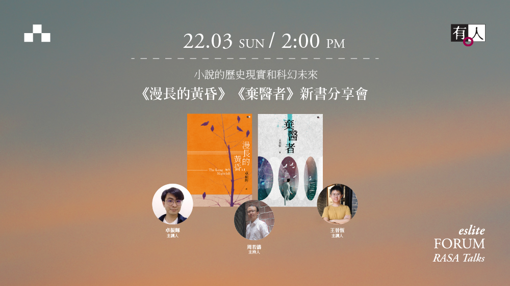 兩位作者身處此時此刻,一位回望過去,一位推想未來。卓振輝和王晉恆將與讀者分享在寫作過程中,如何借用歷史和現實、夢境和科幻等元素,構建小說敘事的種種可能。